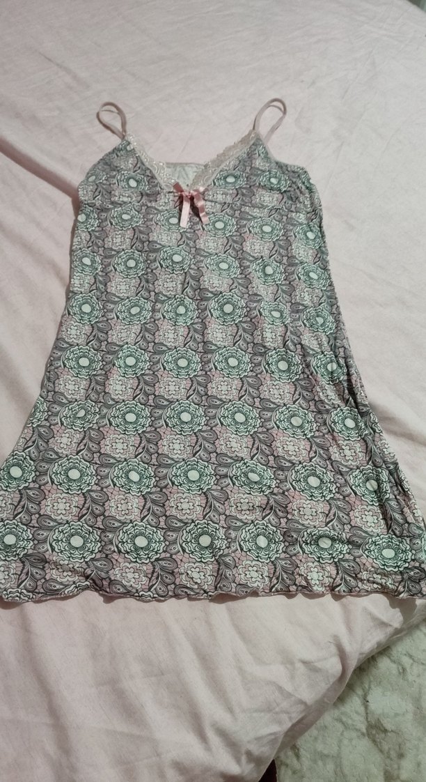 Gri tonlarda yılan desenli, kolsuz, bol kesim uzun kadın geceliği, rahat ve bohem tarzda.
