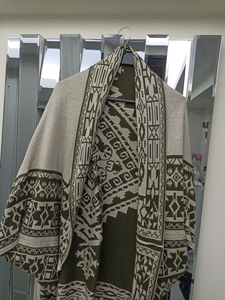 Gri desenli, uzun ve bol kesim triko hırka, bohem tarzı için uygun, kalın çift taraflı kullanım 44 46 48 bedenlere hiç bir kusuru yok yepyeni