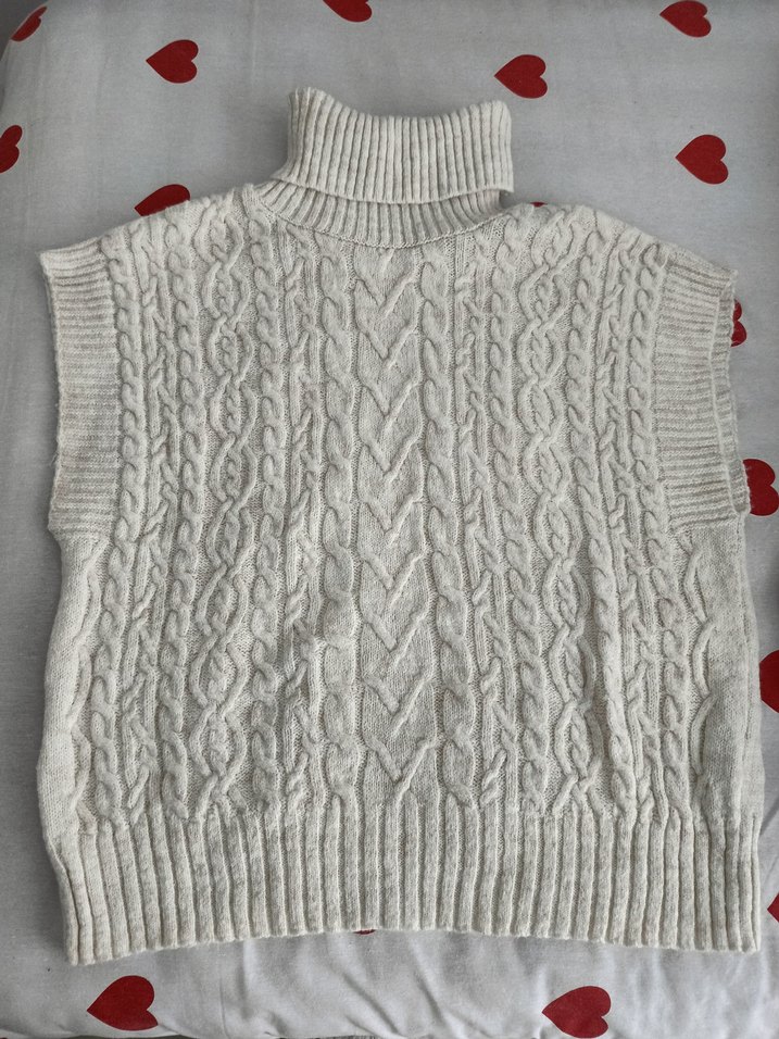 Boğazlı ve kolsuz tasarıma sahip, örgü dokulu gri kadın süveter. Salaş kesimi ve normal boyu ile rahat bir kullanım sunar. Bohem tarzıyla şık ve rahat.