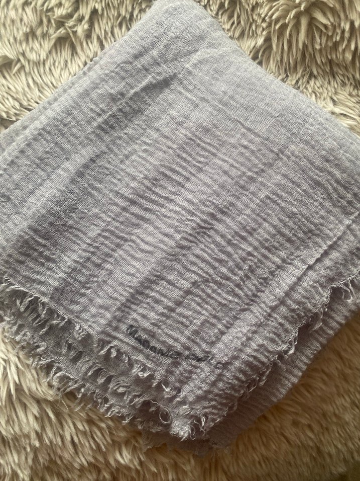 Yumuşak keten kumaştan, gri tonlarda, rahat ve bohem şıklığı yansıtan kadın şalı. Hafif dokulu ve salaş görünümde.