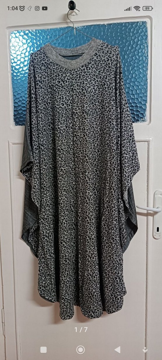 V yaka, kolsuz, bol kesim ve drapeli detaylara sahip uzun elbise. Yumuşak sentetik kumaştan, gri leopar desenli bohem tarzda rahat bir model. yurtdışından alındı marka temsilidir boy 117 cm en 125 cm 100 kiloya kada olur belki daha fazlasına olur