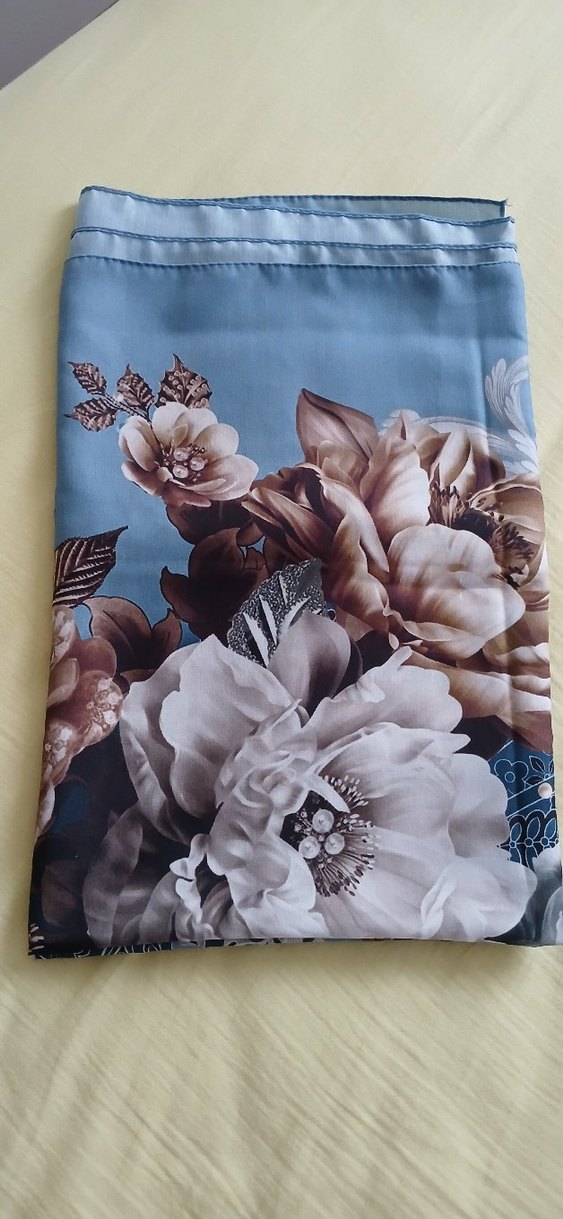 Bohem Gri Mavi Çiçek Desenli Kadın şal