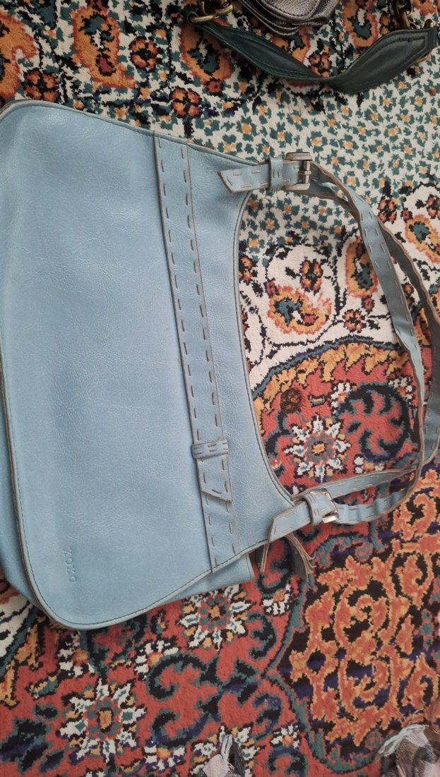 Bohem tarzda, mavi-gri süet malzemeden yapılmış, baskılı ve tokalı kadın çantası. Günlük kullanım için uygundur.