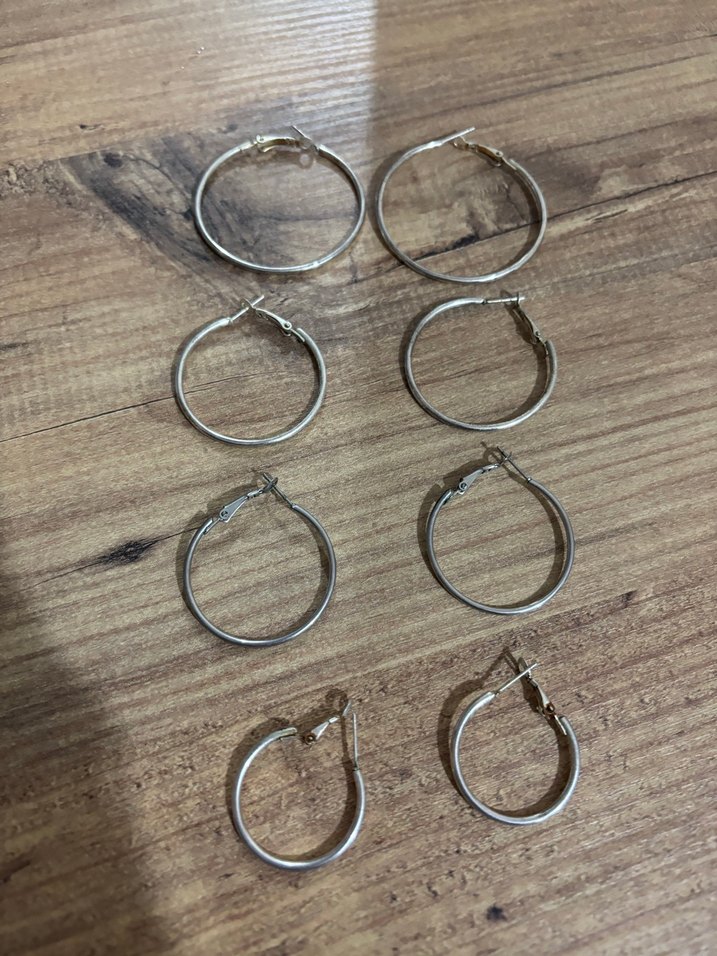 Bohem tarzda, sade ve minimalist gri halka küpe setidir. Günlük kullanıma uygun normal ve midi uzunluklardadır.