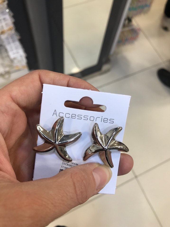 Kısa uzunlukta, tokalı, gri baskılı desene sahip altın renkli bohem küpeler, günlük sade stil için uygun. Marka temsili