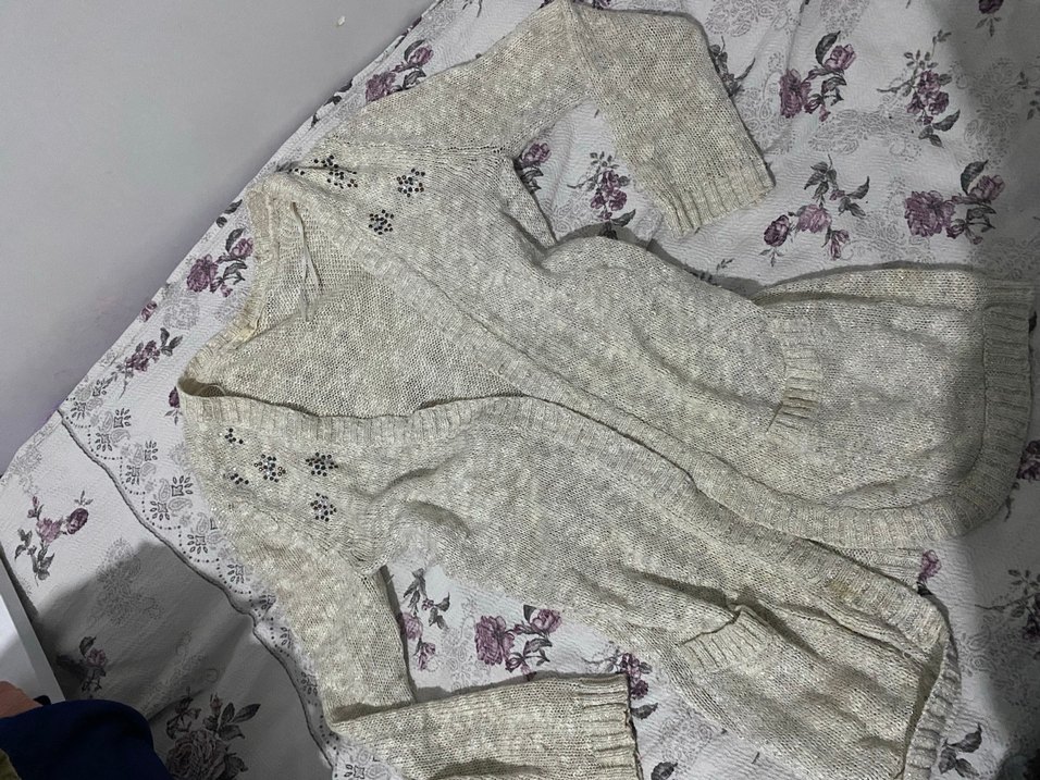 Bohem Gri Nakışlı Boğazlı Triko ceket