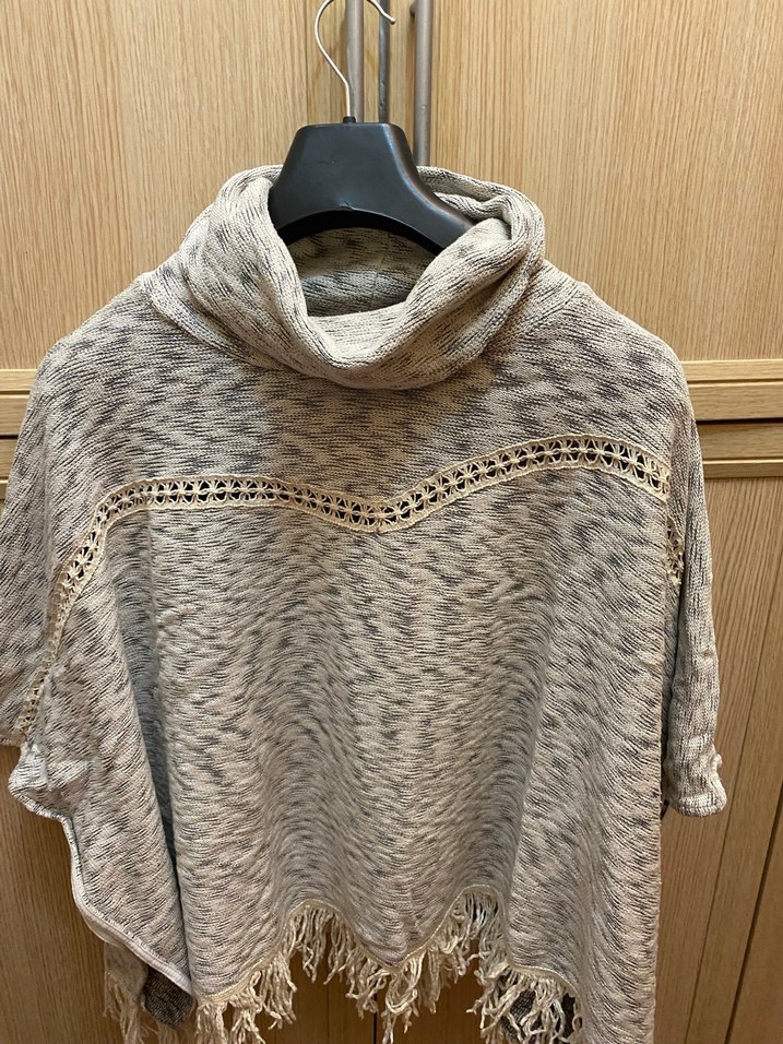 Gri renkte, boğazlı ve uzun kollu, bol kesim örgü kadın kazak. Bohem tarzda, uzun boylu ve püsküllü detaylara sahip, günlük kullanıma uygun.