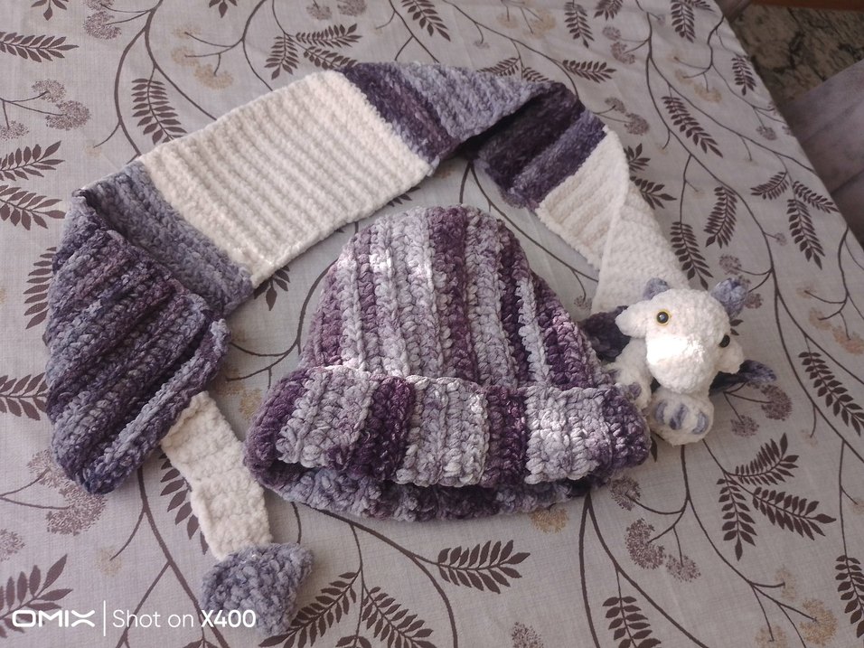 Bu çocuk bere ve atkı seti, gri tonlarında örgü dokusuyla sade, bohem bir stile sahiptir. Desensiz ve temel görünümlüdür.