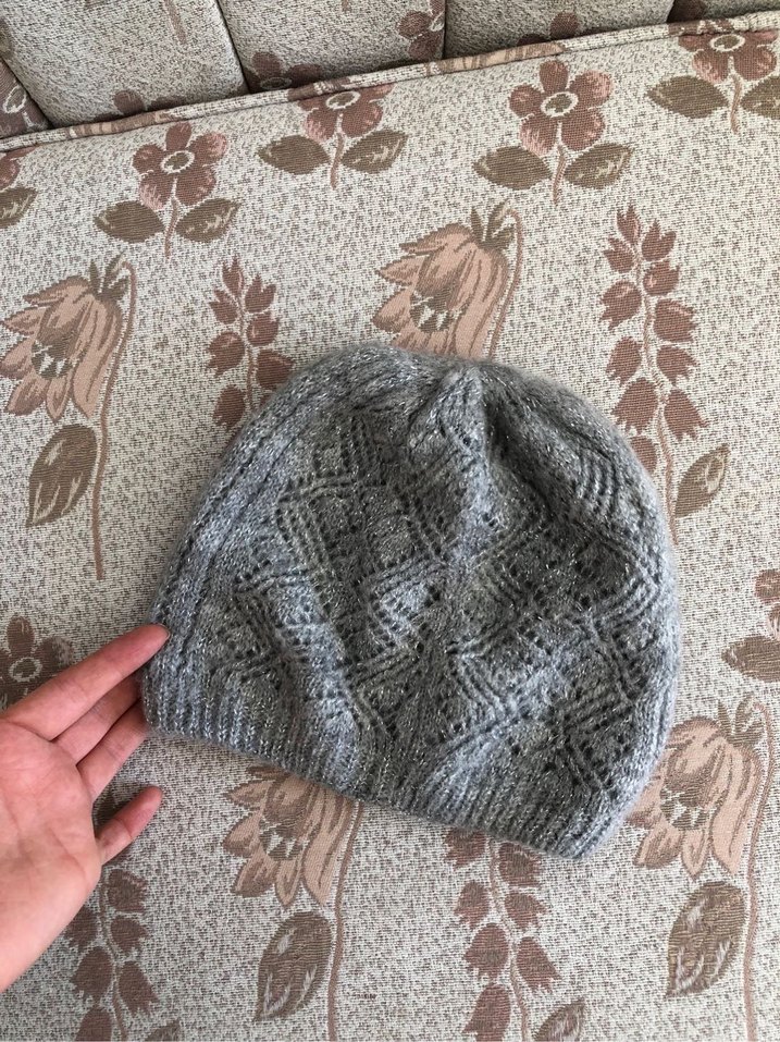 Kadınlar için bohem tarzda, yumuşak gri renkte, örgü dokulu rahat ve sıcak tutan bere.