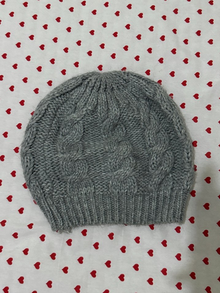 Kadınlar için bohem tarzda, gri örgü kumaştan yapılmış bere. Sıcak ve rahatlık sağlayan dokulu örgü deseni bulunur.