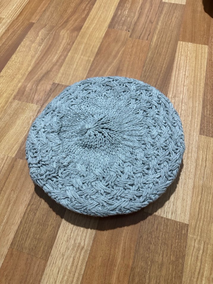 Bohem tarzda, yumuşak gri iplikten örülmüş kadın bere. Rahat ve retro görünüm sunan örgü deseni ile sıcak tutar.