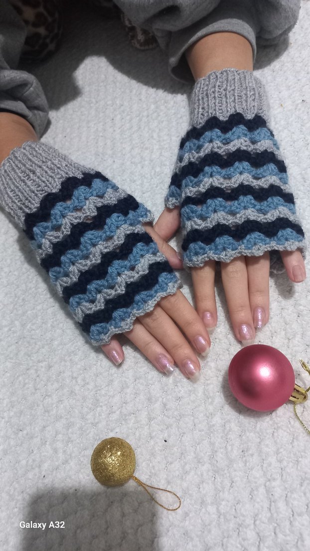 Bohem tarzda, gri tonlarda örgü kadın eldivenleri. Parmaksız yapısıyla sıcak tutar, hareket özgürlüğü sağlar.