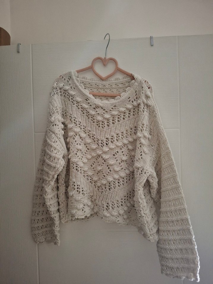 Kadınlar için bol kesim, uzun kollu ve bisiklet yaka gri örgü kazak. Rahat ve bohem tarzıyla günlük kullanıma uygundur. Giyilmedi.