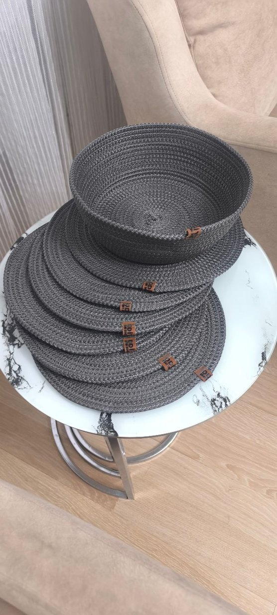Bohem Gri Örgü Tabak altı 6 suple 1 ekmeklik