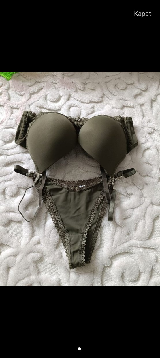Bohem tarzda, yumuşak ve rahat kumaşlı gri sütyen ve külot takımı. Sütyen ayarlanabilir askılara sahiptir.