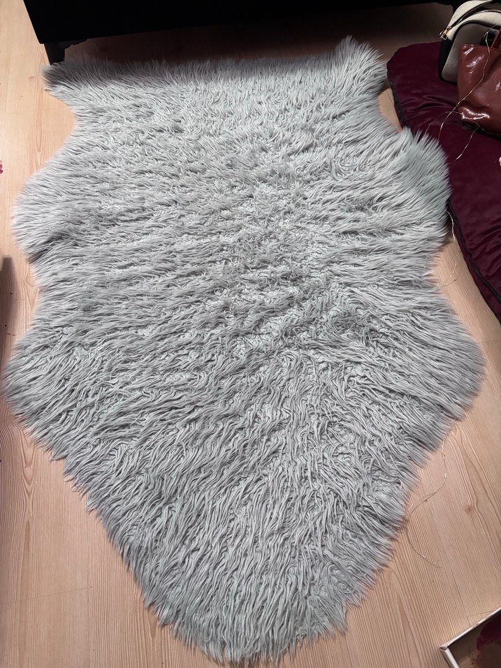 Bohem tarzda, uzun tüylü ve desensiz gri renkte, odanıza sıcaklık katacak yumuşak halı.