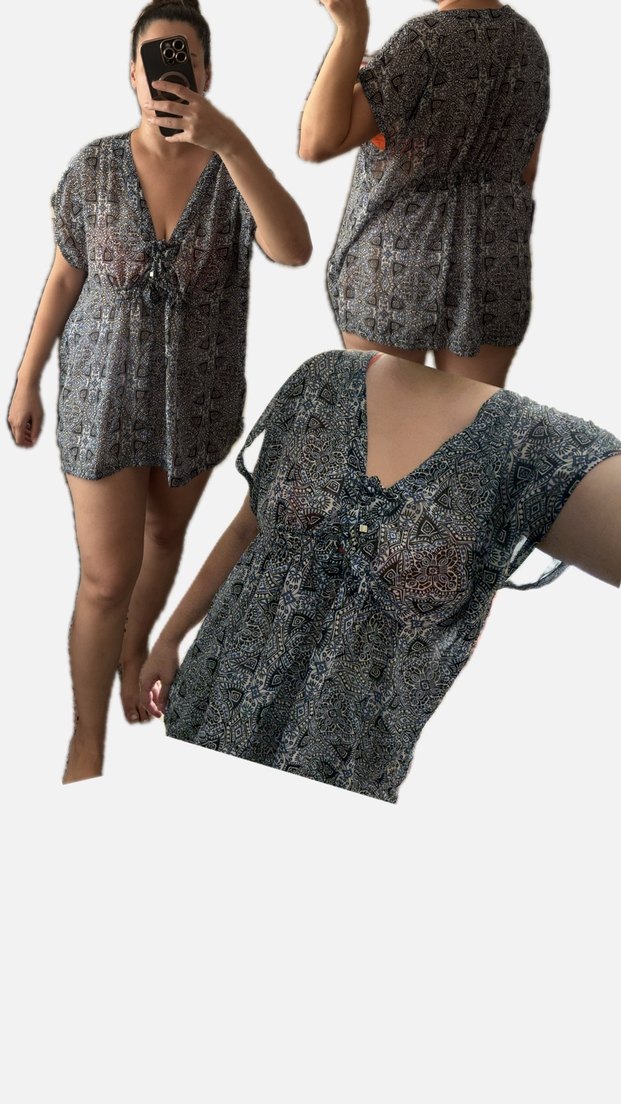 Bohem Gri V Yaka plaj kıyafeti l/cl Defacto