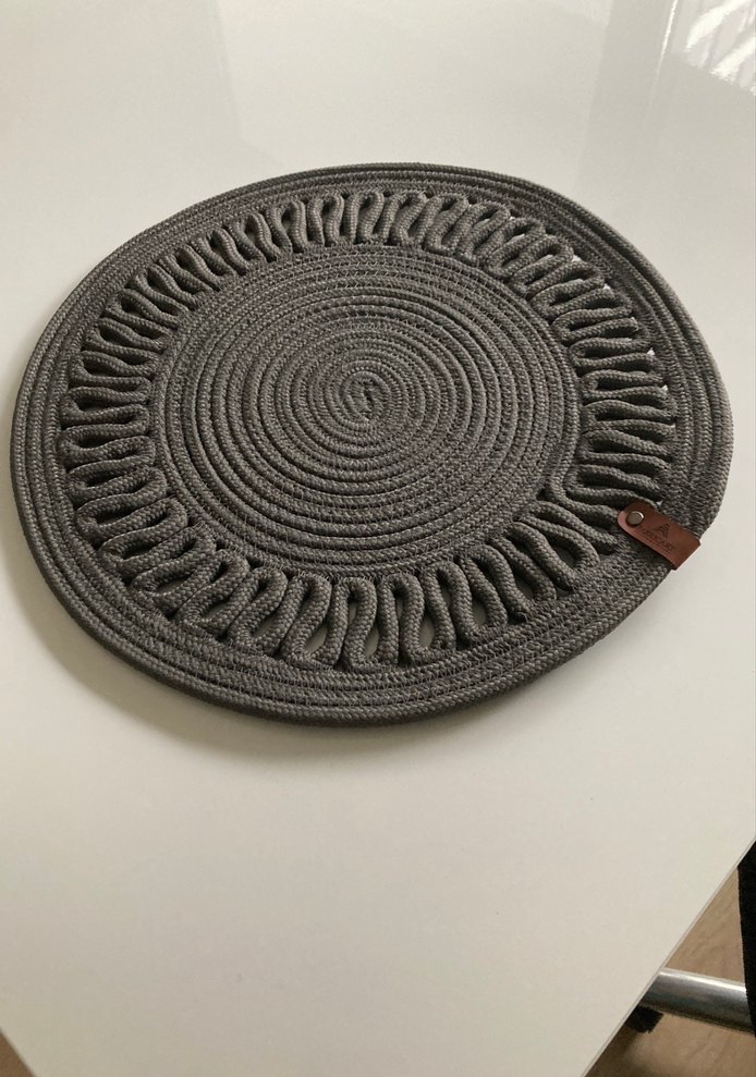 Gri renkte, bohem tarzda yuvarlak Amerikan servisi Kenarlarında döngü detayları bulunan dokulu tasarıma sahiptir.