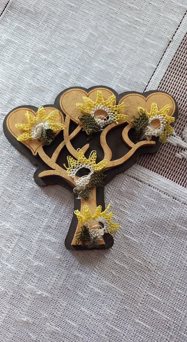 Bohem tarzda işlenmiş, çiçek motifli ahşap dekoratif süs, doğal bir dokunuş katmak için ideal .