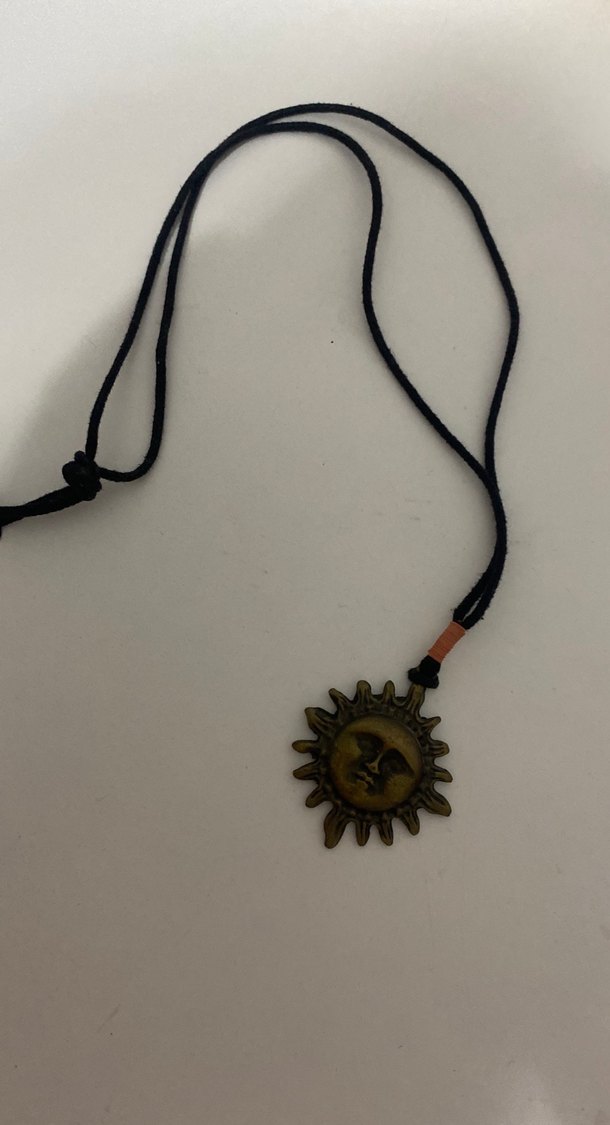 Günlük kullanım için bohem tarzda, siyah ipte detaylı zincirli, altın renkli güneş figürlü midi kolye. ☀️
