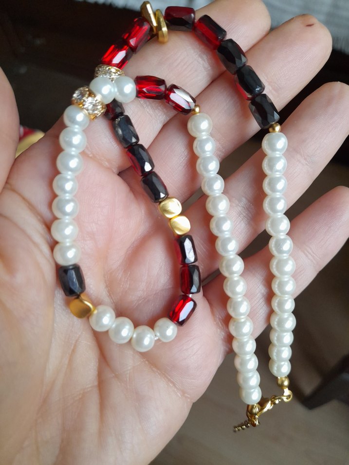Cam inciler ve kırmızı Çek kristalleri ile tasarlanmış altın kaplama ve zirkon taşlı şık kolye . Vintage bohem tarzı gece veya günlük kullanım için uygundur. 43cm +5cm uzatma.Hediye kutusu ile gönderilecektir. gardropsumdaki diğer ürünlere bakmadan geçmeyin