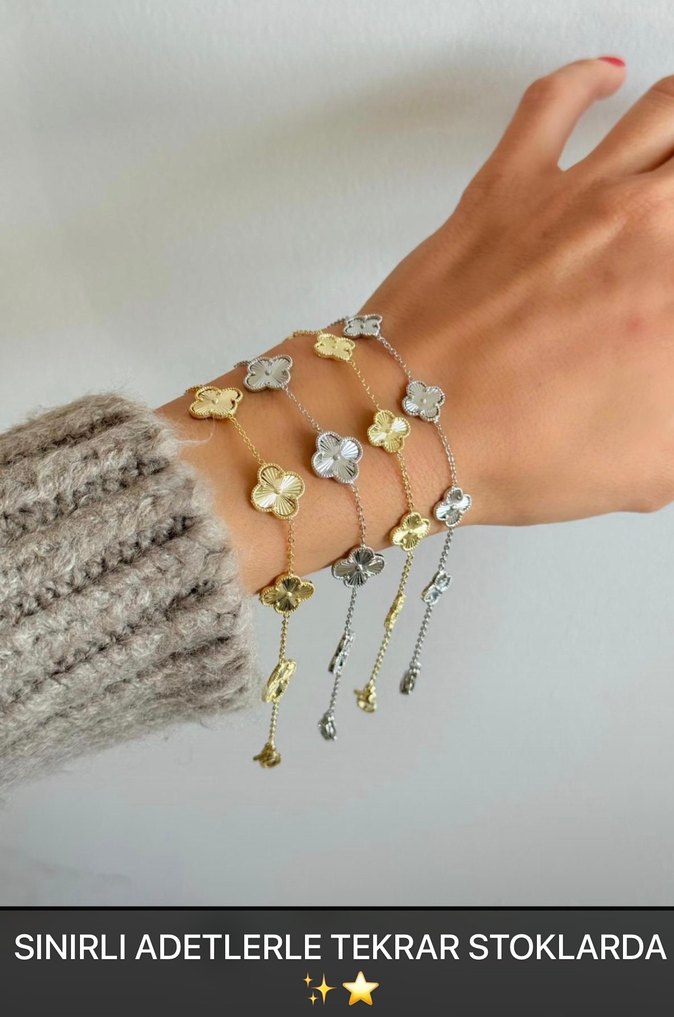 İşlemeli çiçek desenli, altın ve gri boncuklu bileklikler, günlük kullanıma uygun. SINIRLI ADETTE stokta. Adet olarak satılıyor