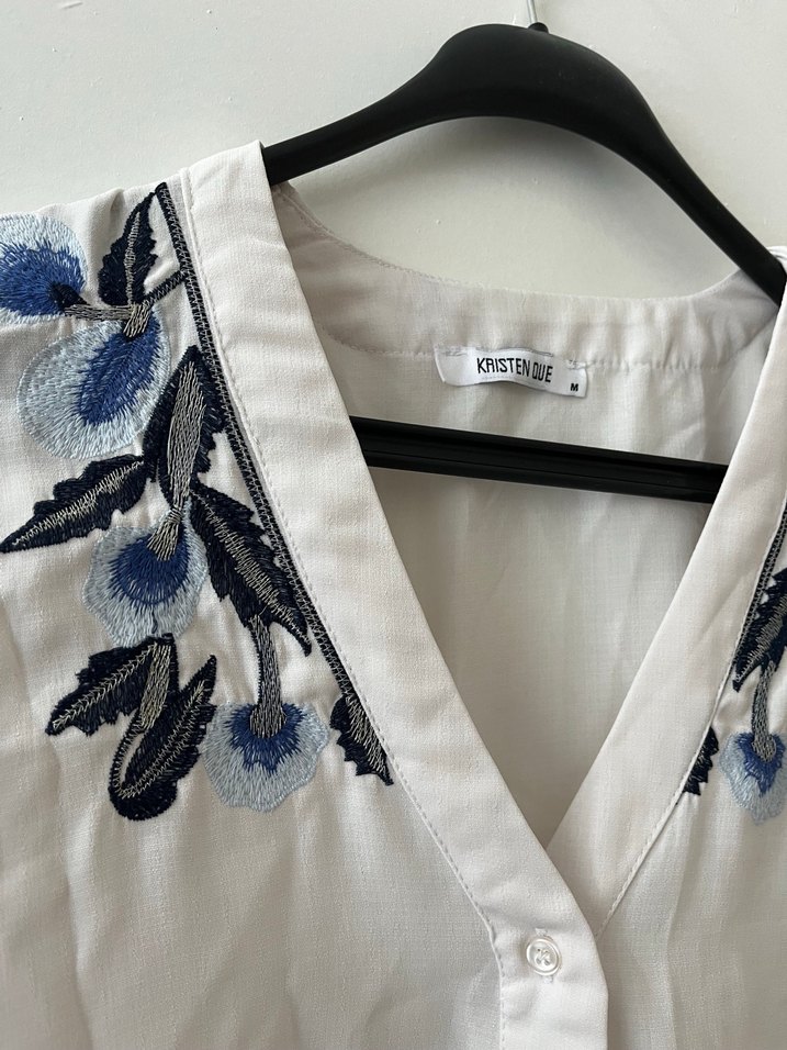 Bohem İşlemeli V Yaka Kolsuz Mini Gömlek