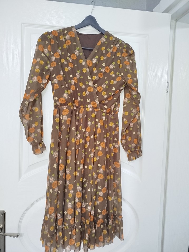 Bohem Kahverengi Çiçekli Tül Elbise