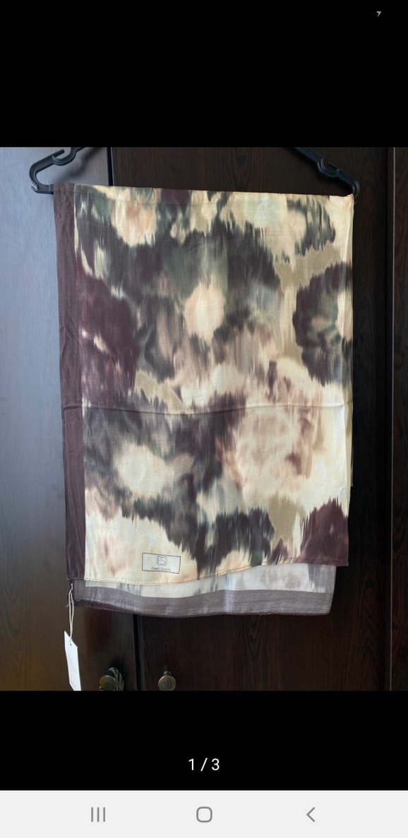 Yumuşak sentetik kumaştan, bohem tarzı yansıtan kahverengi, drapeli kadın şalı.
