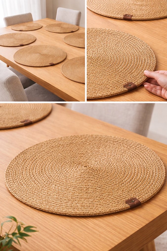 Hafif kahverengi, yuvarlak ve nakışlı detaylara sahip, doğal dokulu bohem tarzda amerikan servisler. Masanıza rustik bir hava katar.