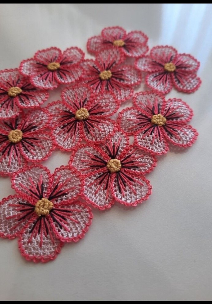 Bohem tarzda, ince işleme ile yapılmış kırmızı çiçekli el işi dantel, dekoratif kullanım için uygun .