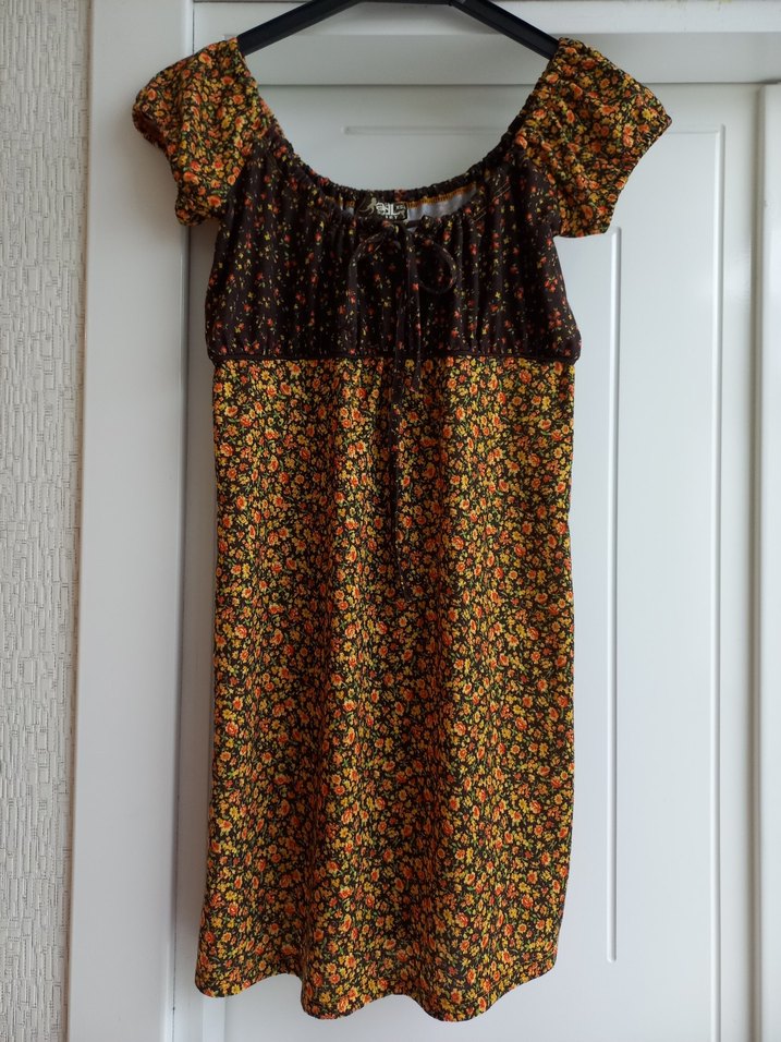 Bohem tarzda, kısa kollu, dökümlü, bol kesim ve çiçek desenli. Biraz tüylenmesi var fotoğrafta belirttim.