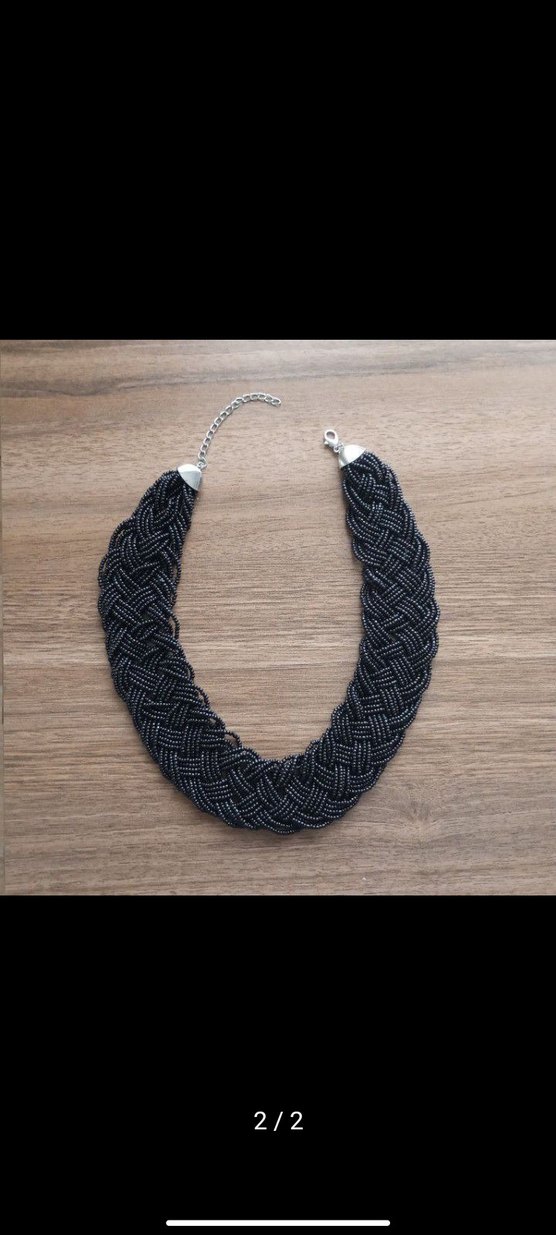 Uzun siyah boncuklarla işlenmiş, bohem ve gotik tarzı yansıtan günlük kullanıma uygun kolye.
