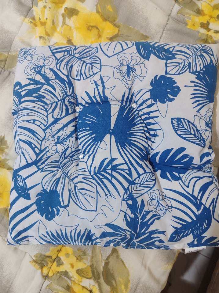 Bohem 4adet tarzda, açık mavi çiçek desenli minder, mekana rahat ve sanatsal bir hava katar.