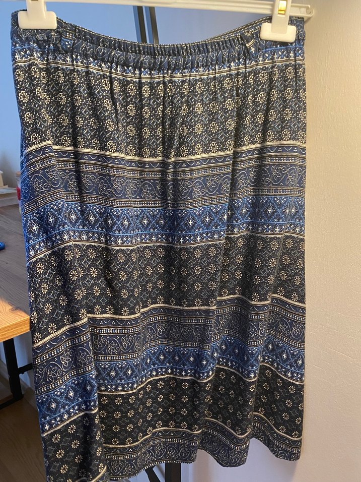 Bohem tarzda, koyu mavi batik desenli, dökümlü ve bol kesim midi etek, günlük kullanıma uygun . . Herhangi bir leke vb sorunu kesinlikle yoktur temizdir dilerseniz farkli gorsellerini paylasirim