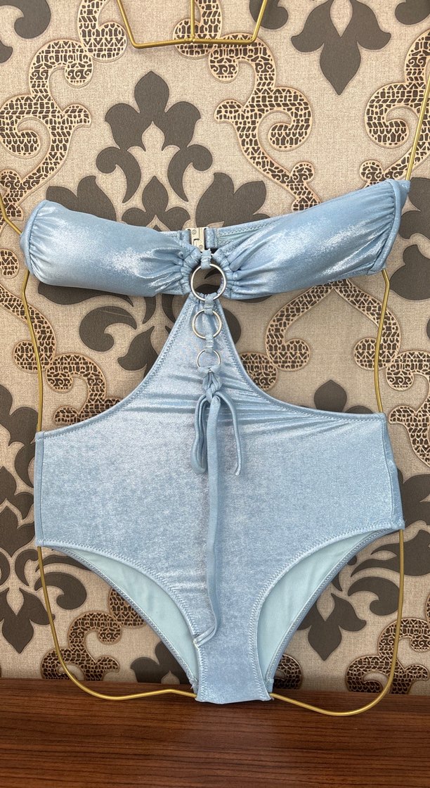 Mavi renkli, askılı ve tokalı detaylara sahip, mini boy ve bohem tie-dye desenli dar kesim mayo. Plaj için uygundur.