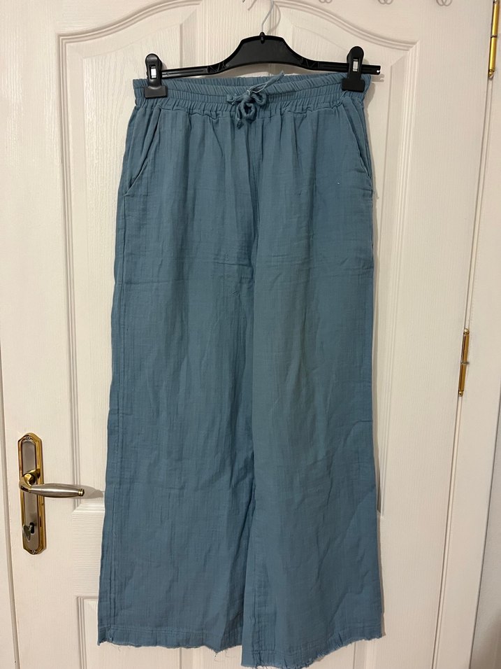 Bohem Mavi müslin Rahat Kadın Pantolon