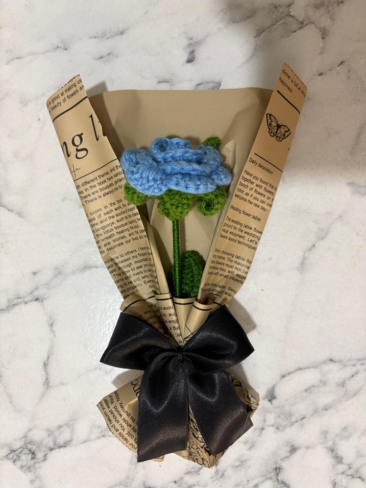 Bohem Mavi Örgü Gül Buketi
