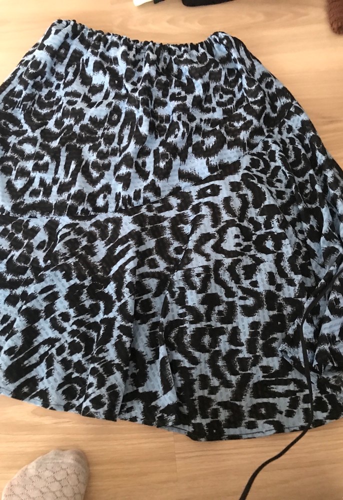 Rahat kesim, volan detaylı mavi siyah desenli beli lastikli etek