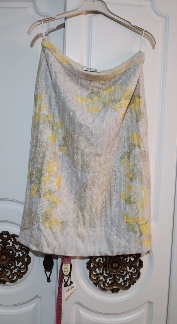 Bohem tarzı eteği, keten kumaştan salaş kesim ve drapeli tasarıma sahiptir. Bej zemin üzerinde gri batik desen bulunur, midi boyda rahat bir seçenektir. boy67 bel 43