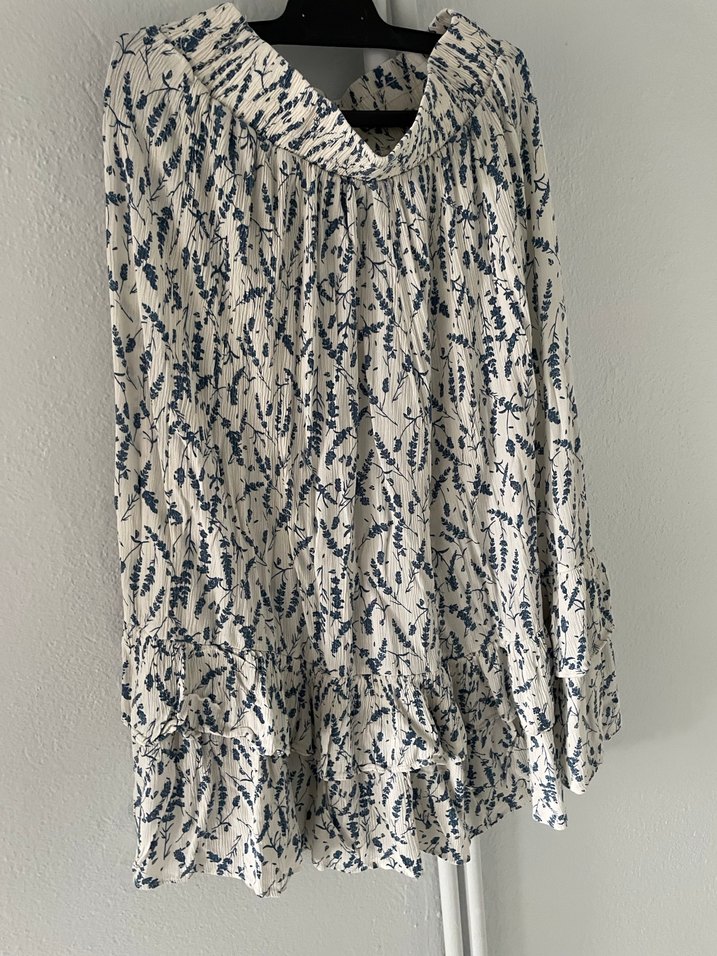 Yumuşak keten kumaştan, beyaz ve gri bohem bağlama desenli, bol kesim midi hamile eteği. Günlük kullanıma uygun, drapeli tasarım