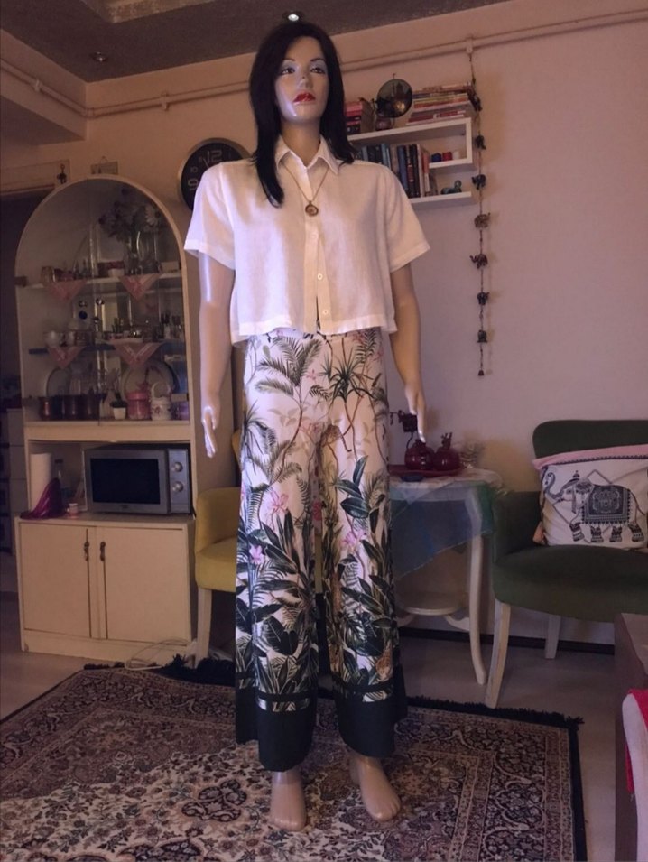 Salaş kesim, düğmeli ve ipeksi kumaştan midi gömlek Bohem tarzda, açık renkli batik , günlük kullanıma uygun. Sorunsuz
