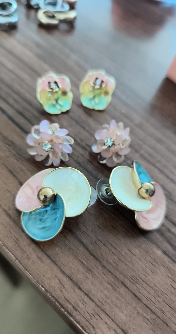 Kısa boy, bohem tarzda pastel çok renkli çiçek desenli, payet detaylı mini küpeler. Düğün günlük ve retro tarzlar için uygun.