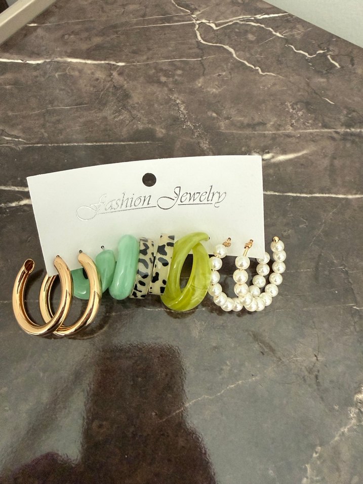 Günlük kullanım için boncuklu, yılan desenli ve çok renkli tasarımlı bohem mini küpe seti.
