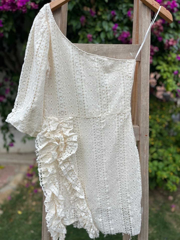 Romantik ve göz alıcı detaylarıyla özel gecelerin vazgeçilmezi Tek omuzlu tasarımı, zarif dantel dokusu ve volanlı kesimiyle bu elbise; bekarlığa veda partileri, düğün sonrası after partiler ya da yaz akşamları ve özel gecelerin, ayrıca şık davetler için mükemmel bir tercih. Feminen hatları zarifçe vurgularken, rahat kesimi sayesinde konforundan da ödün vermez. #minigelinlik #dantelgelinlik #dantelabiye #miniabiye #şık #farklı #tarz #ışıltı #yılbaşı #düğün #kına #nikah #abiye #parti #davet #ofis #günlük #gece #noel #balo #türban #tesettür #network #yargıcı #jimmykey #zara #bershka #pull&bear #ipekyol #massimo #pologarage #jimmykey #farklı #bananarepublic #levis #hm #mango #h&m #vakko #beymen #moschino