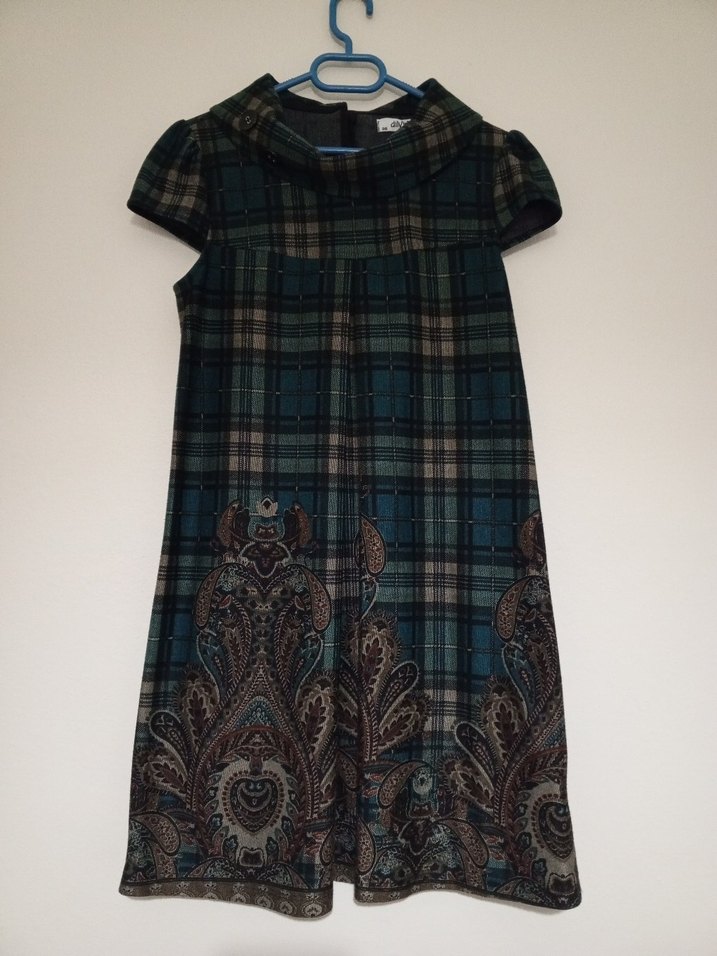 Koyu renkli, düğmeli detaylı, kısa kollu, bohem tarzda, bol kesim midi hamile tunik. Günlük kullanıma uygun.
