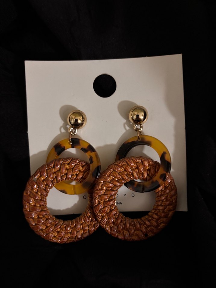 Renkli yılan desenli halkalarla birleşen boncuklu kahverengi mini bohem küpeler, günlük kullanım için uygundur.