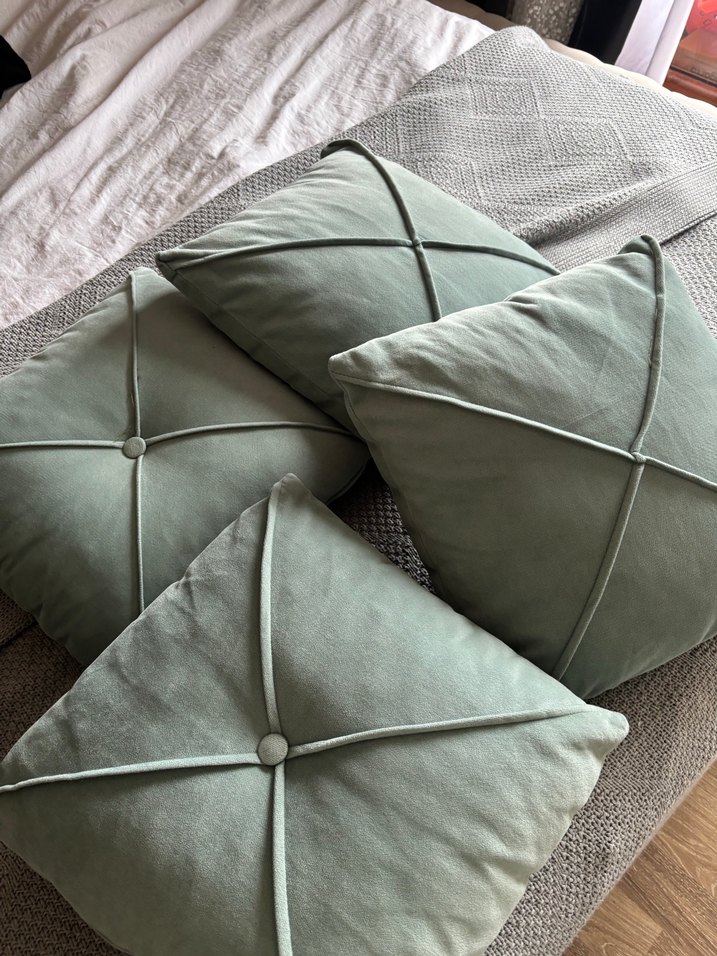 Bohem tarzda, mint tonlarda, düz ve dikiş detaylı dekoratif yastıklardır. ️4lü