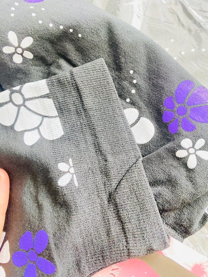Gri ve mor renklerde, bağlama desenli ve elastik bel bantlı, rahat kesimli hamile taytı. Midi boy, bohem tarzında ve konforlu.
