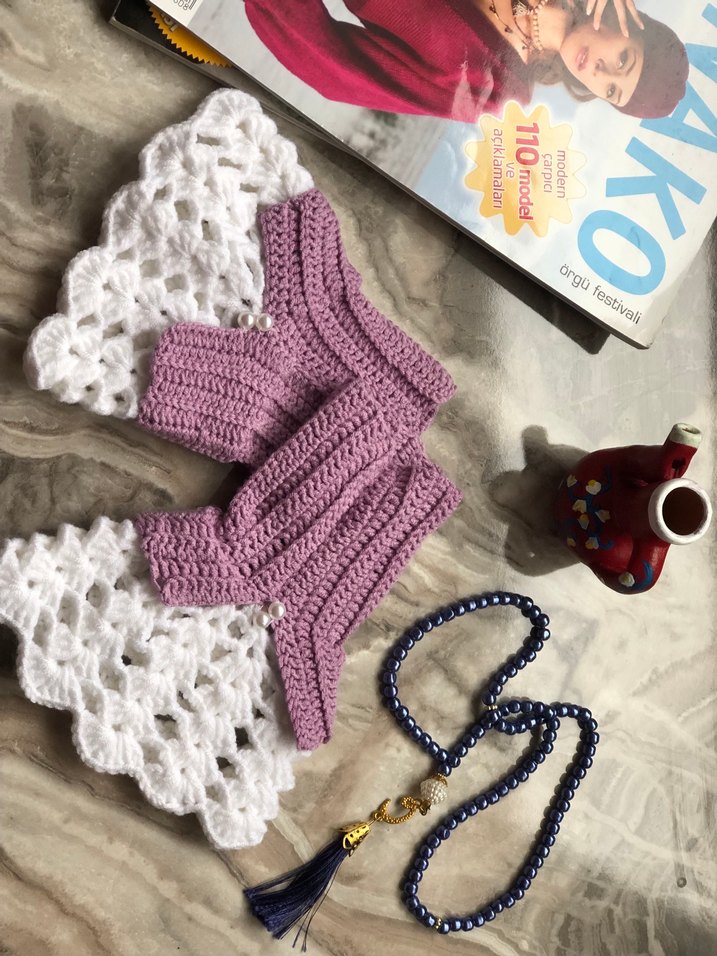 Hafif mor renkli, yumuşak örgüden yapılmış bohem tarzı kadın eldiveni. Rahat ve retro esintili bir tasarım.